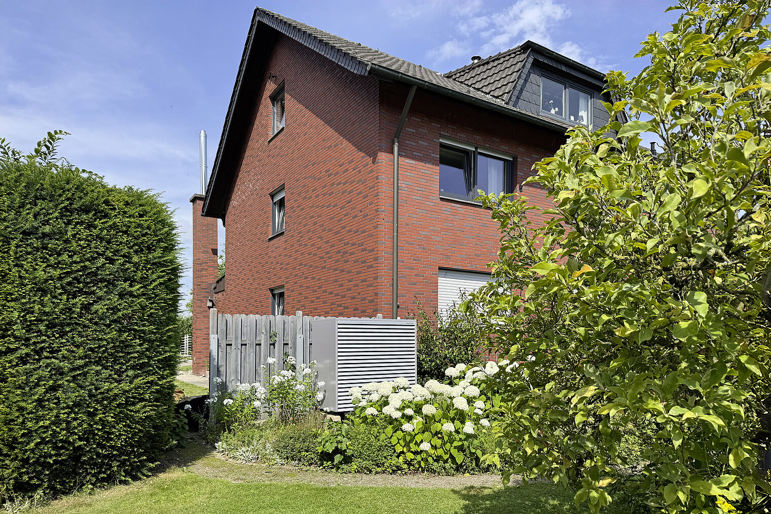 Pomoću programa Energieberater utvrđena je potreba za toplinom od 17 kW za zgradu. Stoga je prvi izbor za modernizaciju bila dizalica topline zrak-voda Biblock® WBB 20, koja modulira od 5,6 do 16,6 kW (A2/W35). Lokalni stručnjak za grijanje HKK Haustechnik, kojeg podržava podružnica Weishaupt Dortmund, instalirao je dizalicu topline, uključujući spremnik pitke vode, međuspremnik i pribor.