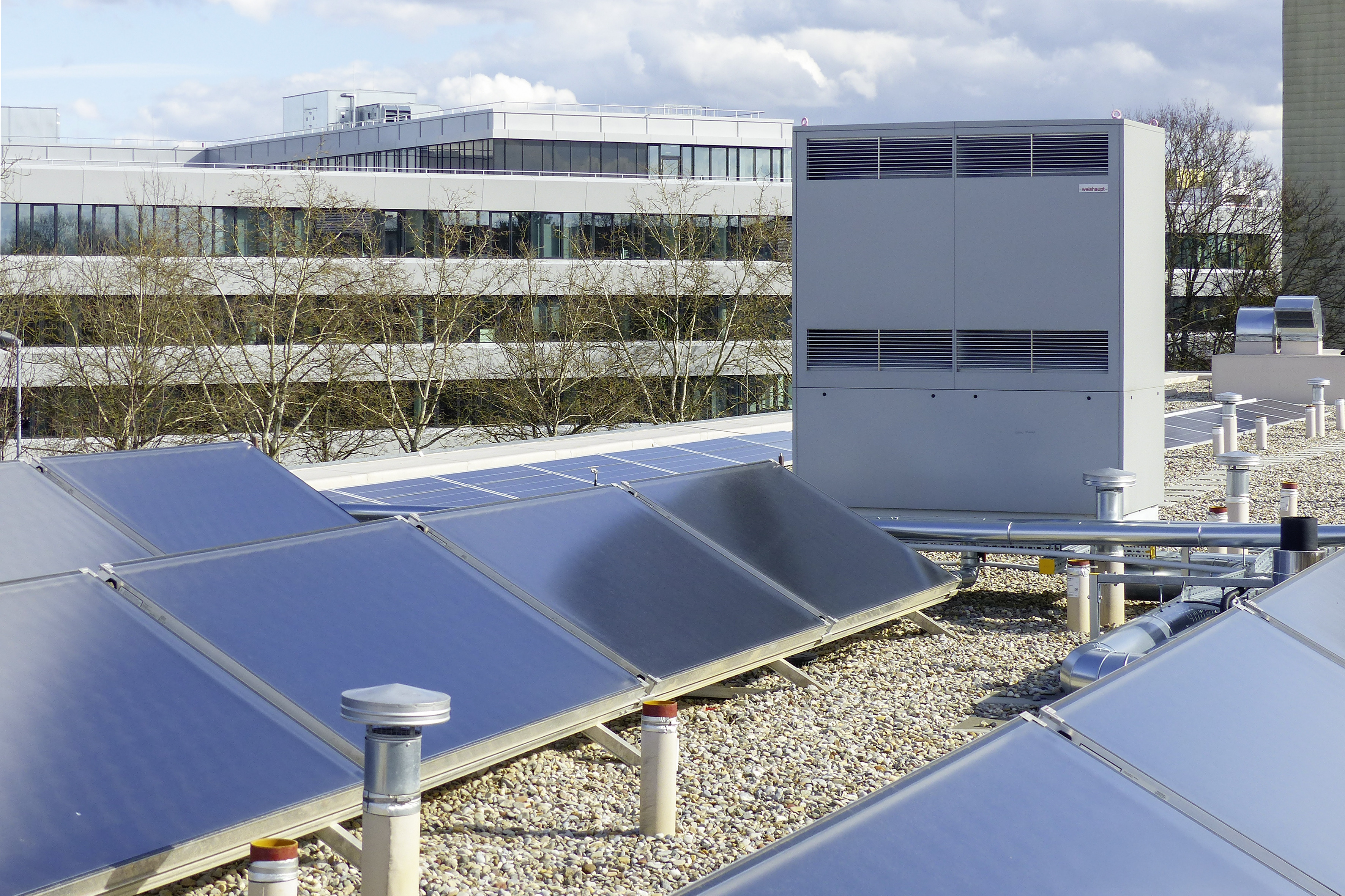 Za grijanje i proizvodnju tople vode u hotelu odabran je Weishaupt hibridni sustav. Sastoji se od vanjske toplinske pumpe zrak-voda WWP L 60 AD, plinskog kondenzacijskog kotla Thermo Condens® WTC-GB 210 i 18 solarnih kolektora WTS-F2 u kombinaciji s dva međuspremnika od 3000 litara.